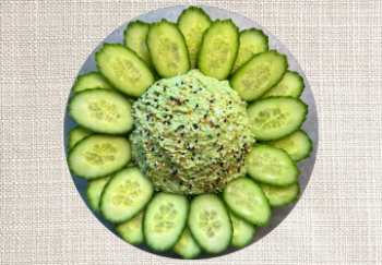 - Leg een laag komkommerblaadjes langs de rand van de guacamole.